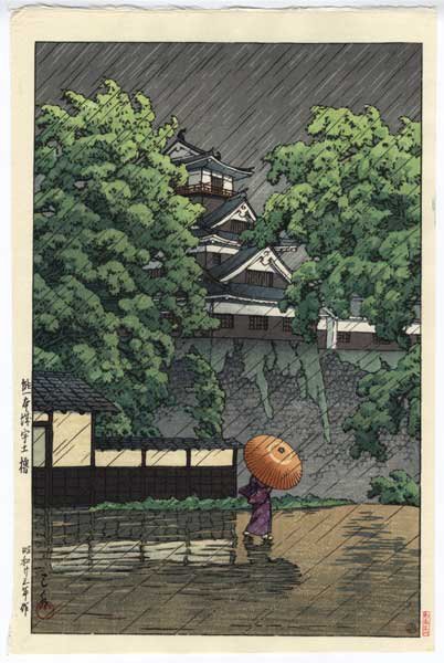 Kawase Hasui (1883 - 1957) Kumamoto Castle in Samidare (Rain in May), 1948 http://www.fujiarts.com/cgi-bin/item.pl?item=141125