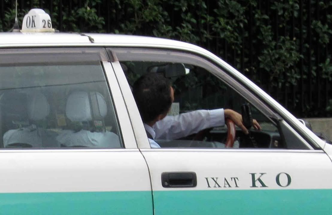 In Japanese, you can write from top to bottom, left to right, and, on vehicles, front to back. (“OK TAXI,” Kumamoto, Japan)