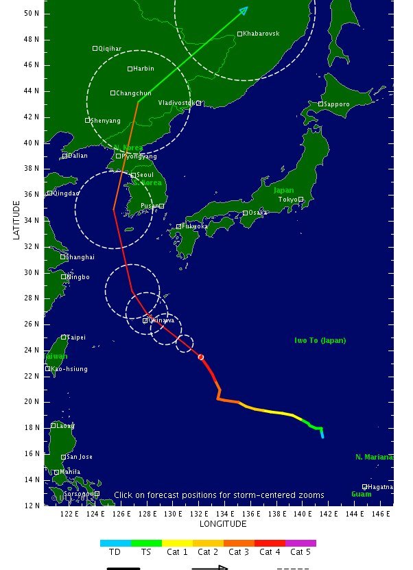 A category 4 typhoon is approaching Okinawa. I think that Katrina, the hurricane that hit New Orleans, was a category 4 when it hit. I hope the folks in Okinawa are OK. This storm probably won’t cause too much trouble in Kumamoto (I hope) but it’s a good idea to keep an eye on it. This image comes from the following site, my favorite for following typhoons: