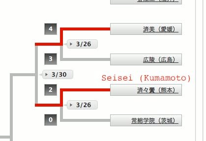 Kumamoto’s Seisei High School won it’s first game in the national baseball tournament (Koshinen) and will play their next game on Saturday: