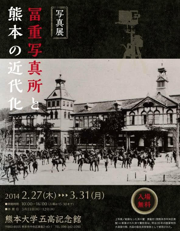 An exhibition of historical photographs is underway at the “Memorial Museum of the Fifth High School” (Goko Kinenkan; 五校記念館) on the campus of Kumamoto University. It will continue until the end of March. Personally, I’m very eager to see these photographs from the historically important Tomishige Photography Studio (冨重写真所). Here’s the address of a web page about the Tomishige Photography Studio: