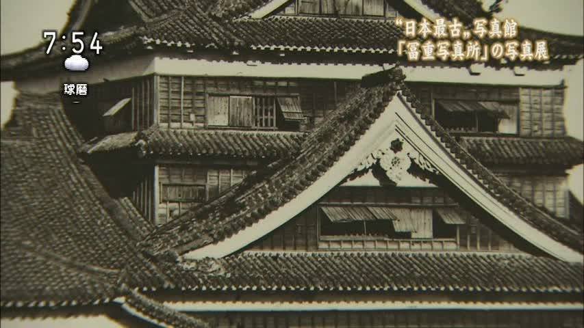 Here’s an image from TV showing the extent to which Tomishige’s photo of the castle recorded small details (e.g. the roof tiles, etc.). The detail and clarity of these photos made them invaluable in the restoration process after Kumamoto Castle was destroyed in the Seinan War. If you’d like to see this and other photos up close, click on the following link to get the details about the exhibition being held this month at Kumamoto University.