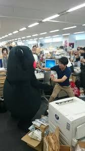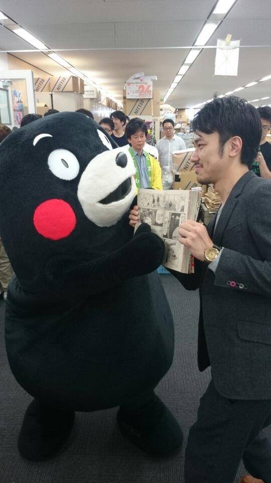 I know, I know. “Not another Kumamon photo!” But wait! This is different. Here Kumamon has charged (?) into the editorial offices Shueisha, which produces the manga Shonen Jump to complain about copyright infringement! Shueisha used images of Kumamon in the latest issue of Shonen Jump without getting approval and the prefecture lodged an official complaint.
