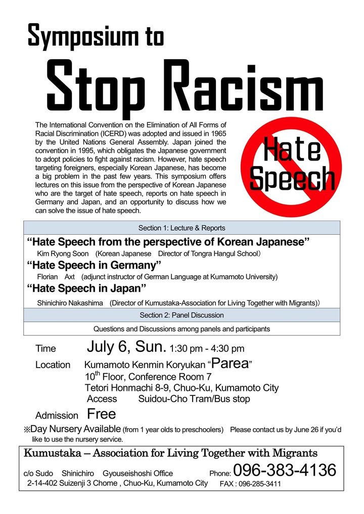 We’ll have a lecture on hate speech from the perspective of Korean Japanese, and reports on hate speech in Germany and Japan.