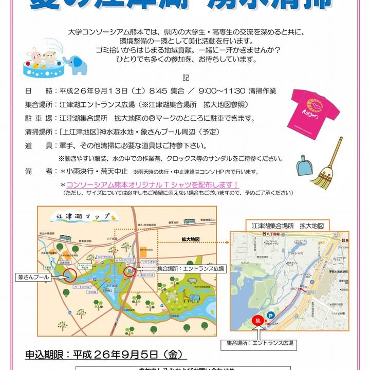 “Please join Ezu Lake Park Cleanup Activity on Saturday, September 13, 2014! Regional Art-Activities Department and Student Planning Committee conduct the environment Activity. A regional contribution start with picking up trash. We would welcome as many volunteers as possible to attend.”