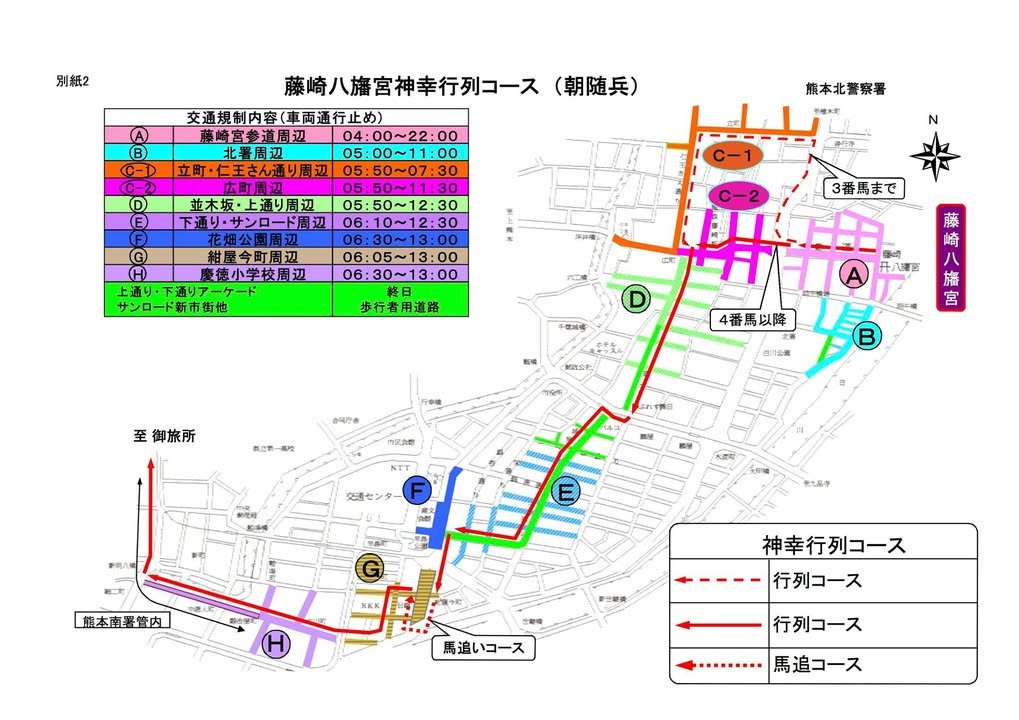 Here are maps showing the routes for the morning and evening parades tomorrow (Sunday, the 21st) in the Fujisaki Hachimangu Shrine Grand Festival. My understanding is that the morning parade provides the best viewing (people and horses are fresh and sober). The parade begins at 6 AM. For more information see