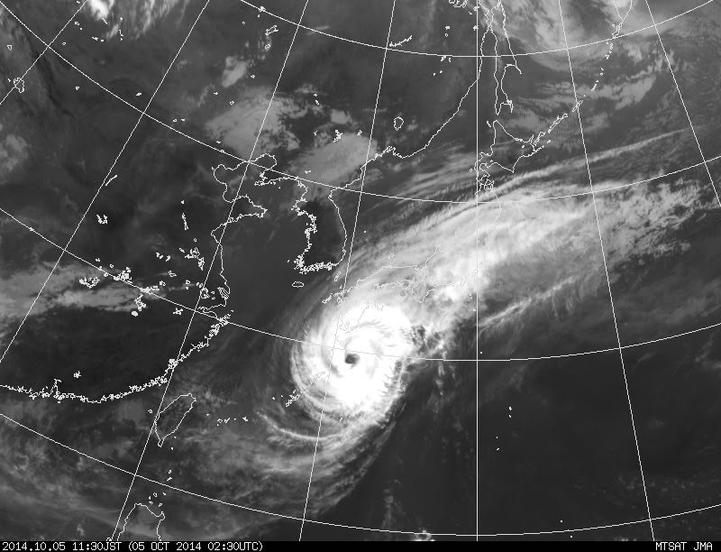 In this image, taken just a few minutes ago, you can see the eye of the storm approaching southern Kyushu: