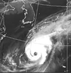 Here’s a little movie of the typhoon swinging past this area: http://www.jma.go.jp/jp/gms/