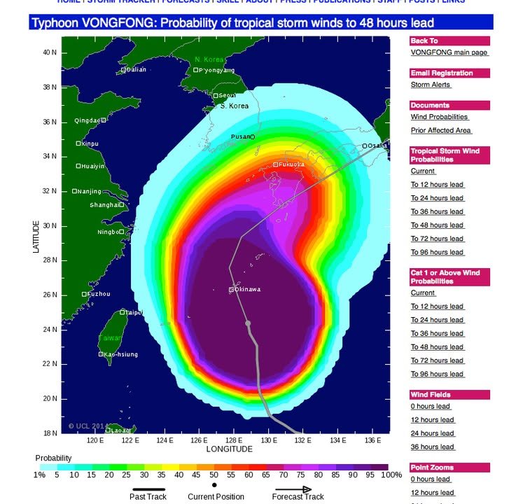 According to the “Tropical Storm Risk” website, there is a high probability that Kumamoto will experiences tropical storm winds (39-73 mph, 63-118 kph, 17.5-32.7 meters per second) in the next 48 hours.