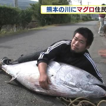 A tuna was found in a river in Kumamoto – an unusual event. If you click on the link you can see a video about this (in Japanese).