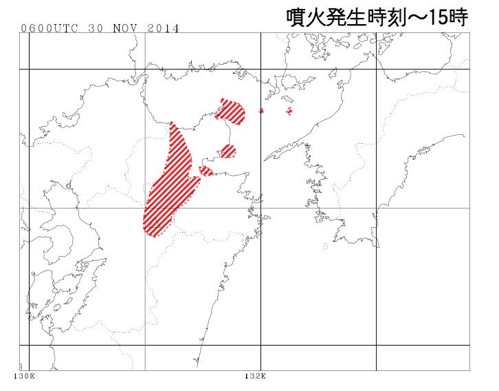 One problem with volcanic activity is trouble that is caused by the ash. The ash can cause flights to be canceled (as has already happened) and the particles in the ash can damage car paint, etc. So, to help people cope, the Japan Meteorological Agency has started to issue predictions of areas that will be affected by the stuff. Unfortunately, I think the information is only available in Japanese: