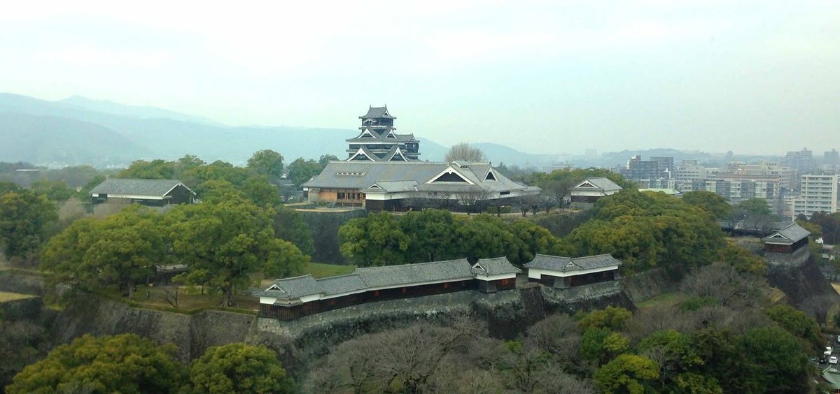 The other day I had lunch at a restaurant on the 14th floor of the Shiyakusho (city hall) building in Kumamoto City. The restaurant (Sai) is very nice and you can enjoy one of the best views of the castle as you eat. This photo is one I took with my iPhone.