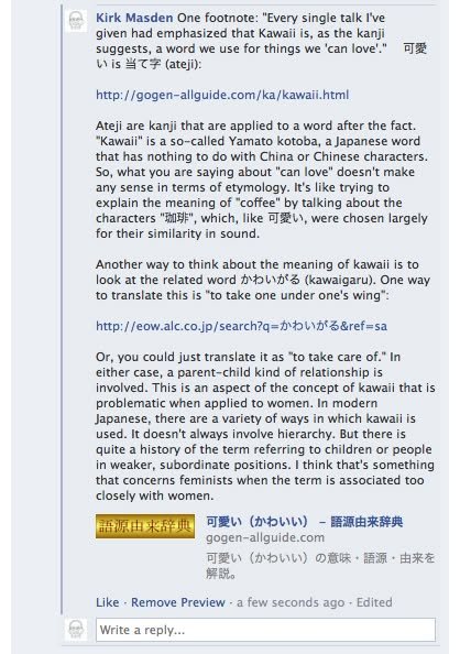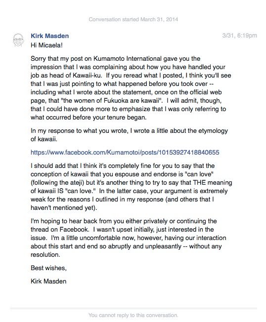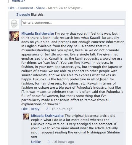 I’ll save my obituary of the Kawaii-ku project (that is, my discussion of the history of the project, including my interpretation of the switch from Mariko Shinoda to Micaela Braithwaite) for another post or two. I hope those of you who are interested in this issue will check it (or them) out.