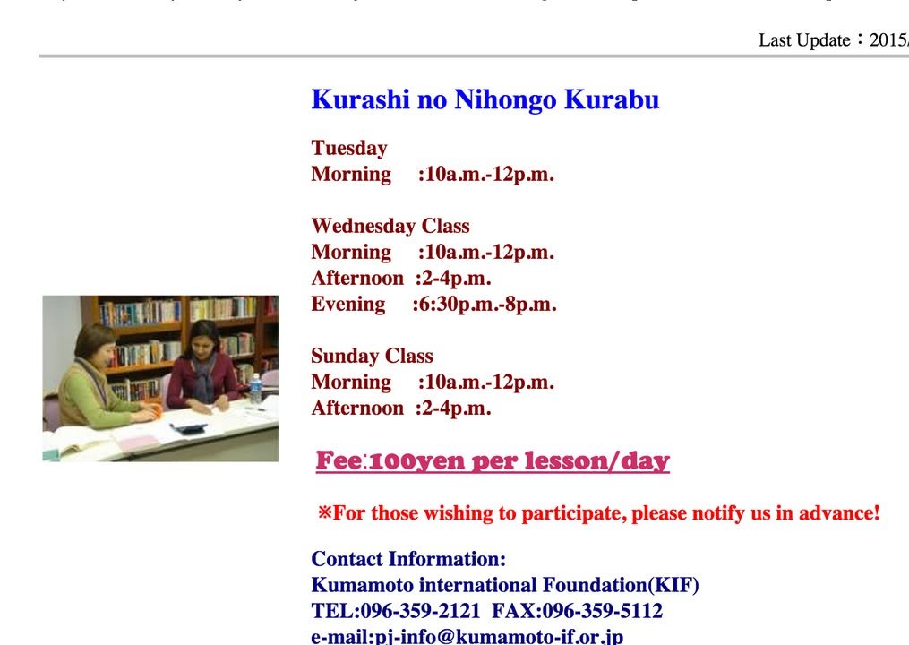 Here’s some information about an opportunity to get some help learning the Japanese language. http://www.kumamoto-if.or.jp/event/event_detail.asp?1=1&kiji_id=7406&LC=e&yy=2015&mm=5&id=2&PageType=cal Tag: LearnJapanese