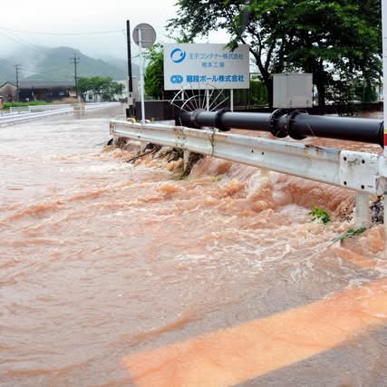 Here’s a scene from Uki-shi. The Japanese caption says that the waters of the Urugo-gawa are flowing over a bridge.