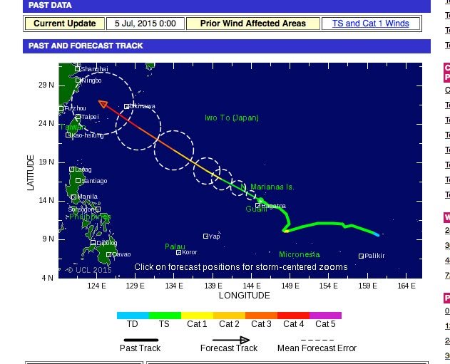 A this point, it looks like the approaching typhoon is more likely to be a problem for Okinawa than for Kumamoto – though we will probably feel its effects to some extent. If the prediction on the TropicalStormRisk website is correct, it may be a Category 4 when it hits Okinawa sometime around Thursday or so.