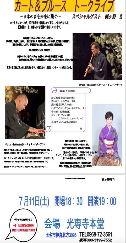 Sorry for the last-minute notice but tonight (July 11th) shakuhachi performer Bruce Huebner will perform at Kosenji Temple in Tamana. For more information, see