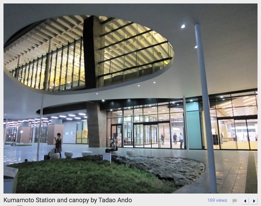 The image you see, with the caption “Kumamoto Station and canopy by Tadao Ando” is from the following page: