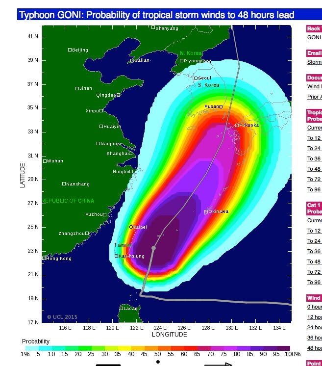 The probability of tropical storm winds hitting Kumamoto by Tuesday is fairly high: