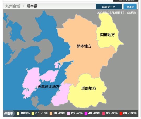 The storm has passed but as of 5 PM, many households are still without power. I see no indication of Kyuden’s site as to when the power can be restored. Judging from the relative lack of progress since this morning, it may take a while.