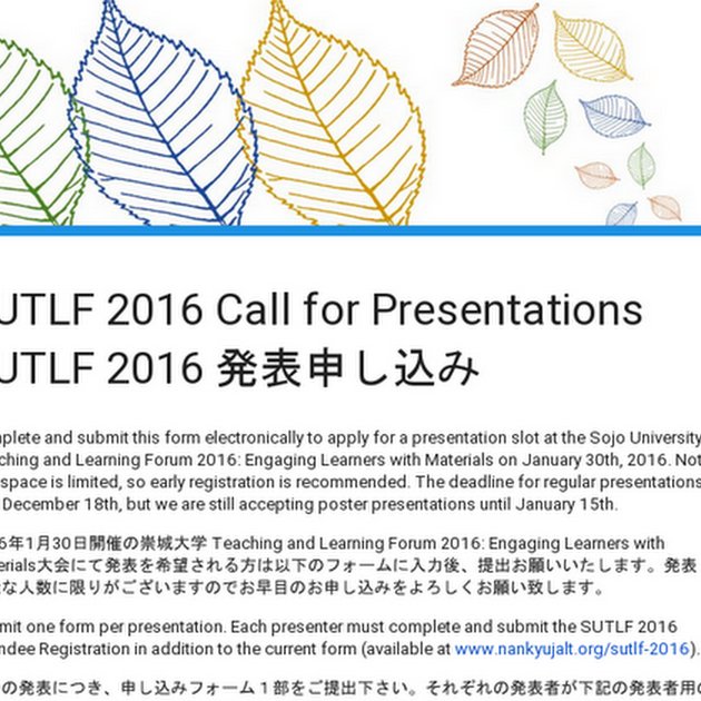 For more information: http://www.nankyujalt.org/sutlf-2016 Hope you can present or attend!