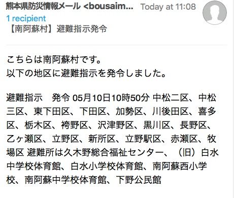 The second image gives the details for the evacuation order issued in Minami Aso.