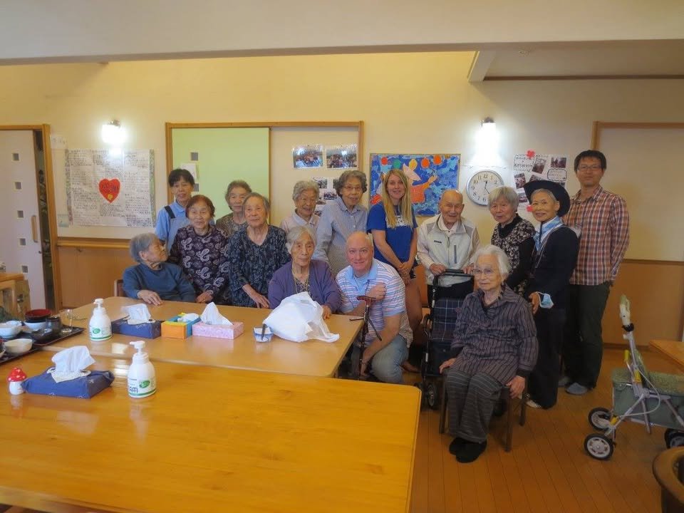 Kumamoto International hosted two members from the U.S. military, Sheyenne Sullivan and Mike Hufler, who had driven from Camp Zama in Kanagawa to Kumamoto to deliver relief supplies collected by the Camp Zama Girl Scouts in a drive they had organize called Operation Backpack. (Their dedicated Website is available at the link: http://www.zamagirlscouts.org/operation-backpack.html ). Members of a local Girl Scout troop were on hand to meet and accompany them to Minami Aso, the location of their recipient, an elderly care home also active in local service. Mr. Hufler had this to say about his experience: