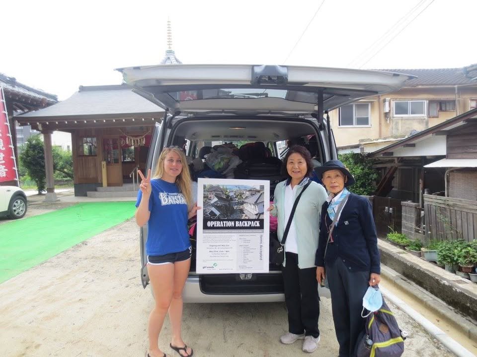 “Following the devastation resulting from the earthquake that occurred in the Kumamoto region, Sheyenne Sullivan and Mike Hufler decided to enact “Operation Backpack”. This small gesture of humanitarian aid involved the Camp Zama community working with the local Zama Girl Scouts. Sullivan, the troop leader, led the collection campaign and the Girl Scouts pulled together with the small Army Community here in collecting 79 backpacks, and several boxes of humanitarian aid comprised mostly of hygiene and safety type items. When the military airlift fell thru, Sullivan and Hufler were approved to rent a van and personally deliver these items to the people of Kumamoto with the assistance of Bill, Renee, Jacky Hearne, as well as local Girl Scouts leaders of Kumamoto. We wanted to ensure these items were delivered prior to the rain season, as the potential for further disasters are compounded during this time. We aimed to achieve two main goals throughout this operation- Show solidarity and goodwill to the people of Kumamoto through this small contribution; Educate junior Girl Scouts on the importance of a community pulling together, and show that one person can make a difference through volunteer efforts.”