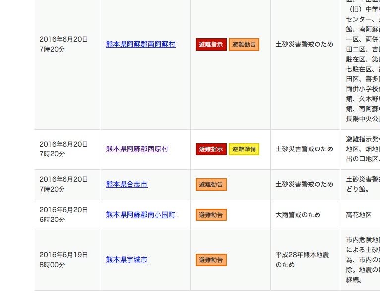 I’m trying to post information about various evacuation orders and recommendations but Kumamoto Prefecture makes this sort of information very difficult to confirm on the web. The page they provide is