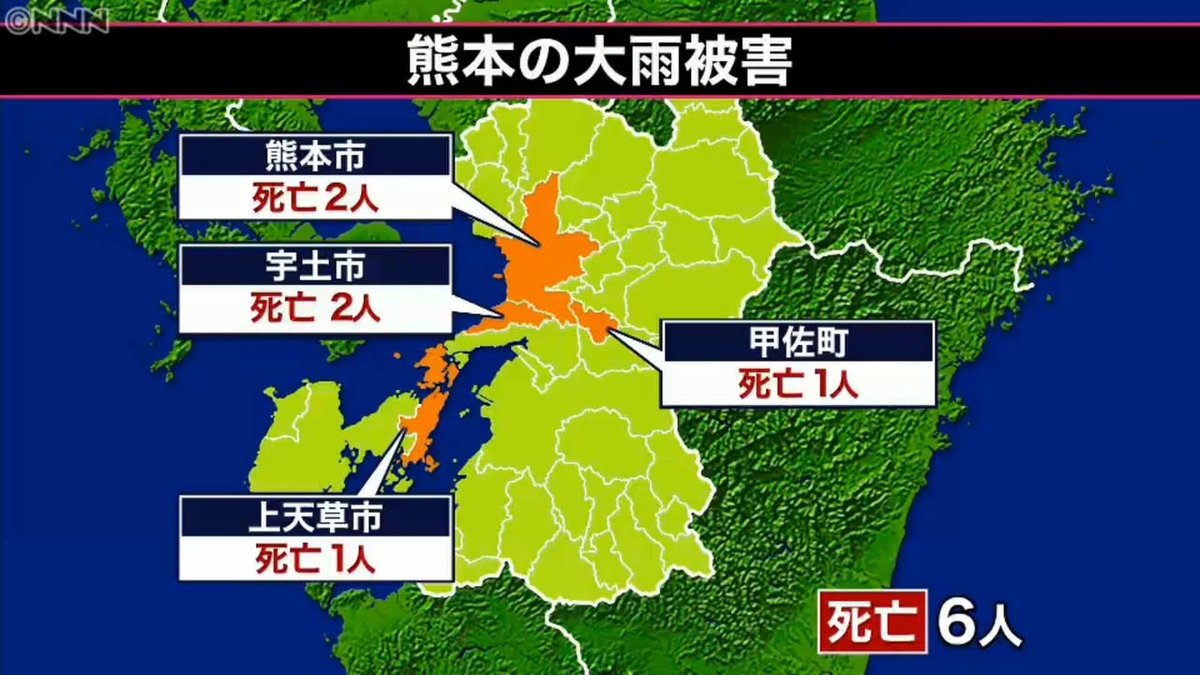 This screenshot shows where the six deaths that resulted from the heavy rain occurred: