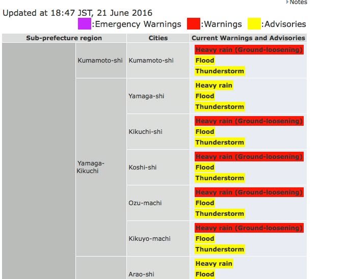 More rain is on the way. Check out the following page to see all of the warnings in effect for Kumamoto: