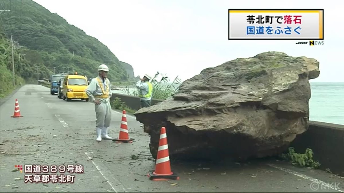 Early this morning, this bolder fell on Highway 389 in Reihoku (Amakusa). Fortu…