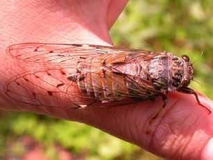 The males generally don’t travel far, spending their time trying to out-shout each other to attract females; females do not produce sound. Unlike most noise-producing insects, cicada do not produce noise by stridulation but by noisemakers called tymbals, located below each side of the anterior abdominal region, which are basically drum-heads sounded by contracting and relaxing internal muscles - kinda like if you could attract a mate by producing a huge amount of noise flexing your abdominal muscles ten times per second.