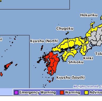 Unfortunately, the forecast for tomorrow is severe rain. It seems that extremely moist air from the typhoon to our south is likely to dump buckets of water on us. Stay away from steep mountainous inclines if possible and be on the lookout for flooding if you are near a stream or river.