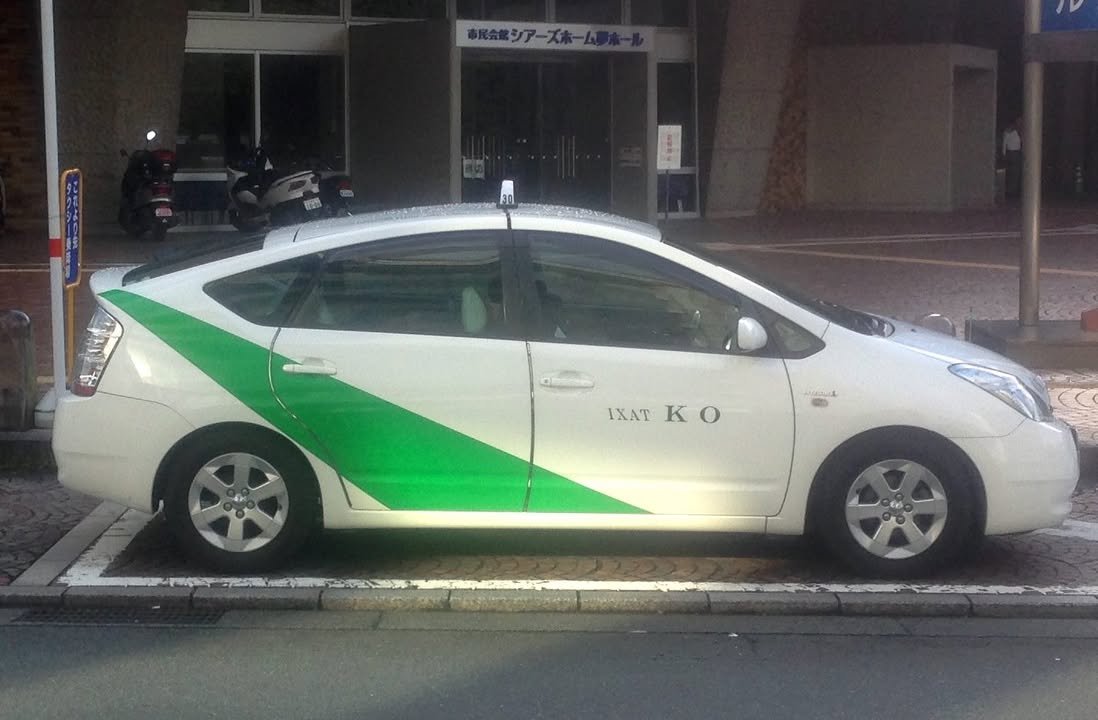 I have a soft spot for the OK Taxi company, even though I don’t have many opportunities to ride in their cars. I first became interested in them because the order of the letters on their cars’ right sides is from right to left. In Japan, writing from right to left has become fairly rare, except on vehicles – where horizontal writing often starts at the front of the car and goes to the back. This front-to-back approach means that horizontal writing on the left side of cars and trucks proceeds from left to right but that the writing goes from right to left on the opposite sides of the cars. If you don’t read Japanese, you might not notice this on the cars and trucks you see in Kumamoto but the OK Taxi company makes it obvious for English speakers by following the custom when they paint the letters “OK TAXI” on their cars. I thought this might be a tradition that was on it’s way out but the other day I was happy to see that the company is continuing to follow this writing style on their newer hybrid cars.