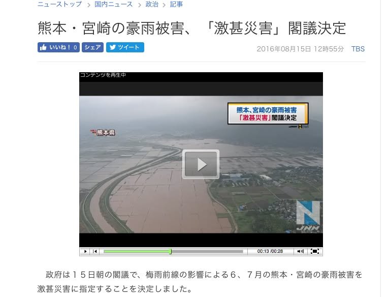 Though I haven’t been able to find any mention of this in English language media, parts of Kumamoto have again been designated as “disaster with extreme severity” (激甚災害) areas. This time, the designation is for areas hit hardest in the heavy rains of June and July. To read about the designation in response the earthquakes go to