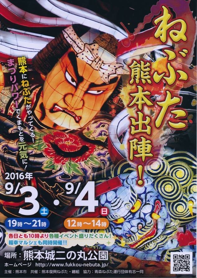 To aid Kumamoto restoration, Sendai, Aomori and Akita Prefectures have assembled a group of their Nebuta sculptures for display at Ninomaru Park on September (wow - September already?!) 3rd from 7:00 - 9:00 PM and 4th from 12:00 - 2:00 PM. The event is free of charge, but donations for Kumamoto recovery will be welcome. Tip o’ the hat to AnneMarie. - William