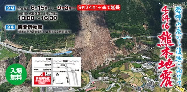 Kumamoto apparently has a Newspaper Museum located near Shimotori sponsered by the Kumanichi (map at the link)! They are currently holding an exhibition of photographs from the series of quakes which has been extended to September 24 (the exhibition, not the quakes - those will probably continue much longer). Admission is free - and the venue is air conditioned! Tip o’ the hat to Michiko Shiiba - William