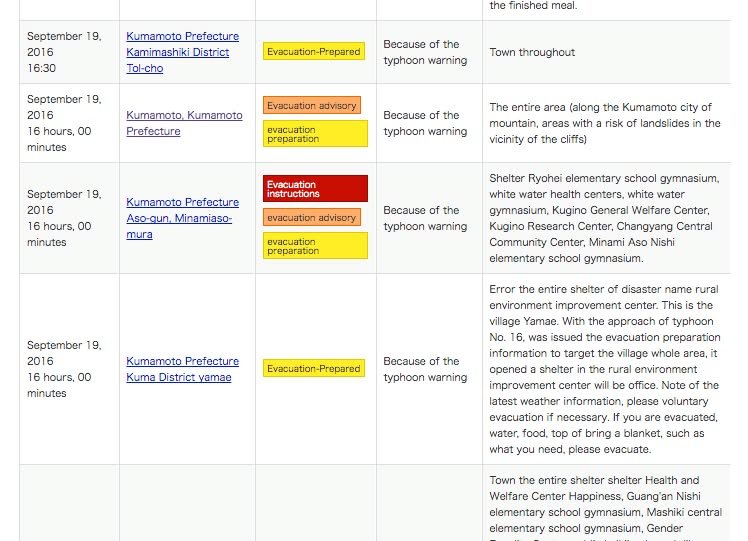 Calls for evacuation have been issued in some areas, particularly those vulnerable to landslides. The image you see is only a sample. To see all notices, go to the following link: