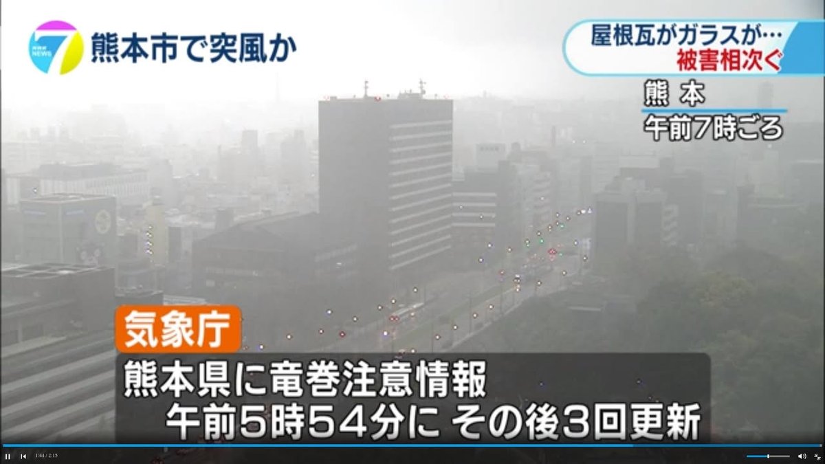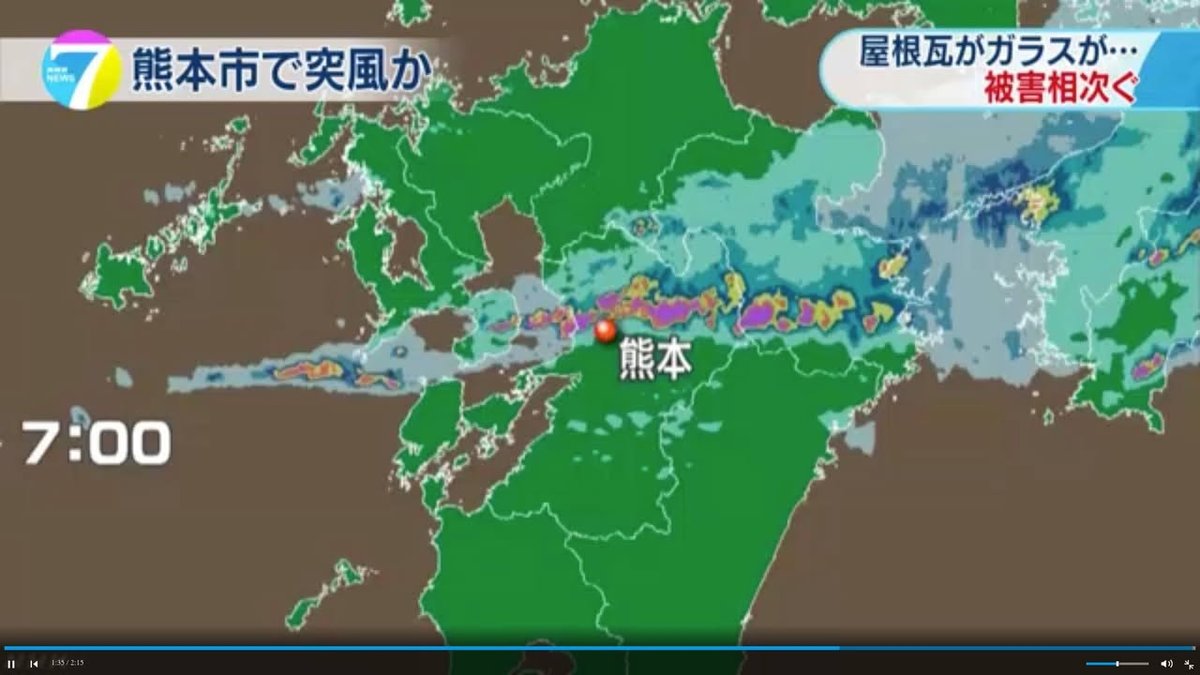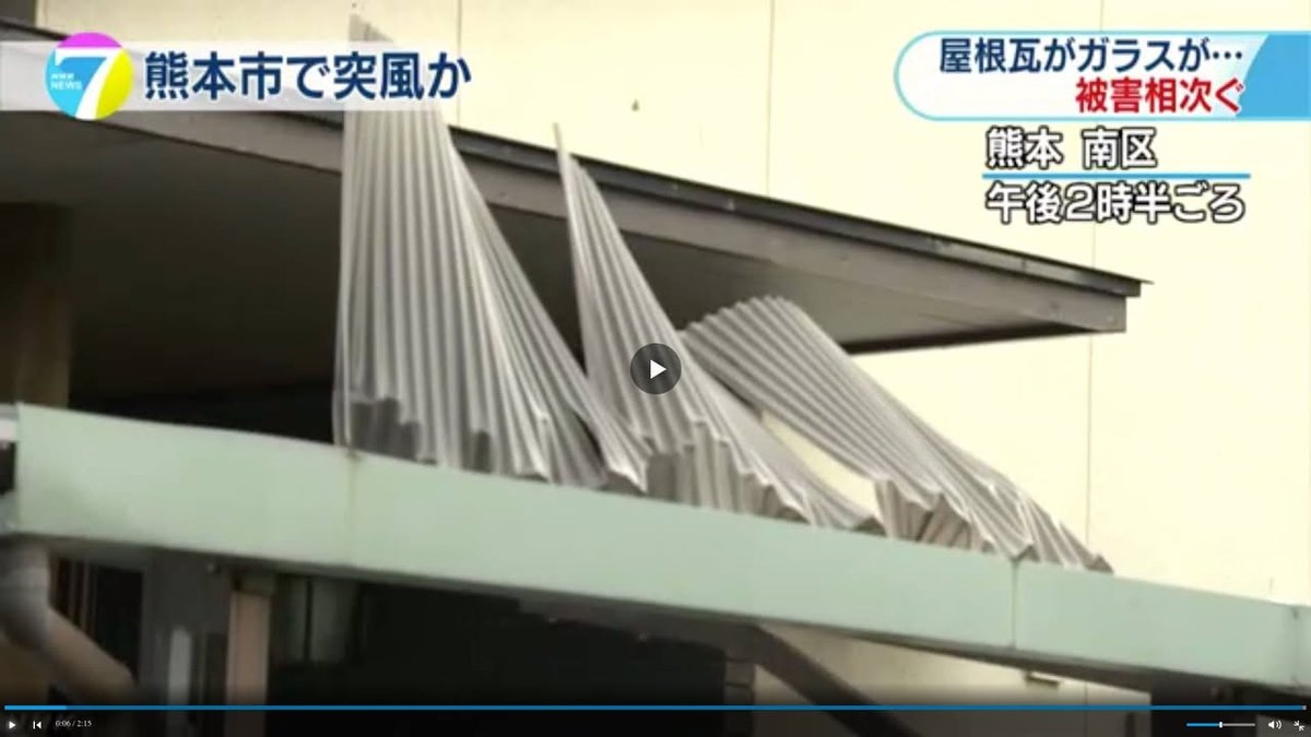 I suspect that many of you who live in Kumamoto City woke up to the sound of heavy rain and thunder this morning. I didn’t realize it at the time but on NHK’s national news broadcast this evening I learned that there had been tornado warnings and that the South Ward (Minami Ku) of Kumamoto City had experienced very strong gusts of wind – strong enough to damage roofs and TV antennas and break a school window. I’m not aware of any English news articles about this but you can see NHK’s Japanese-language report here: