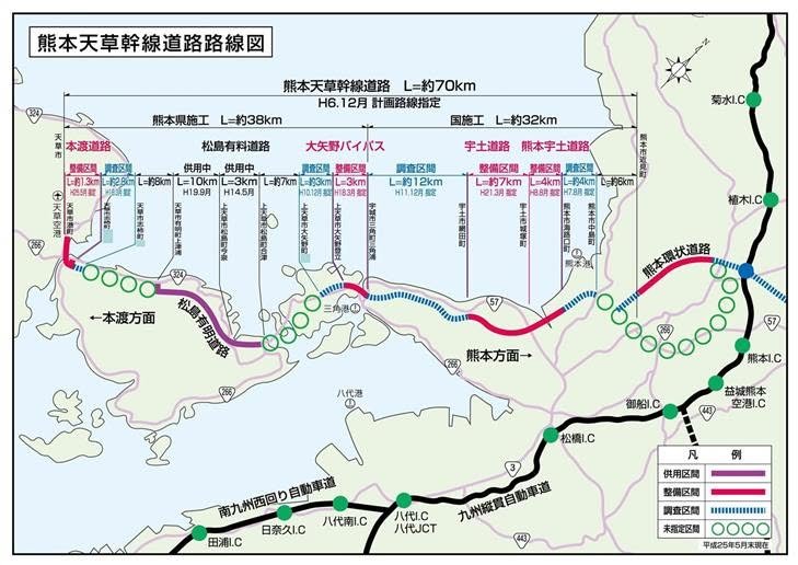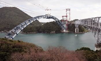 Amakusa is famed for, among other things, its five bridges, the first of which connects Misumi and Oyano towns. It is that type of bridge that you hope will still be there by the time you reached the other side. As part of a major roadworks project to connect a planned new interchange on the Kyushu Expressway between Ueki and Kumamoto ICs with Hondo, a new bridge is being built to supplement the No. 1 bridge. Its arch was completed yesterday, as can be seen in the below photograph. More information on the new and very-welcomed route can be found at the link. I’ll write more on this topic later. - William