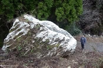 Turns out a boulder which, in scientific terms, is classified as “friggin’ big” was loosened during the quakes, slid down a hill, and ended up smack in the middle of a small lane connecting to a chestnut orchard in Mifune, rendering the lane impassable. At a loss, the village finally decided to auction it off. Bids started today at Yahoo Action 「ヤフオク!」. So, if there is someone on your shopping list who already has everything - well, they likely do not have a friggin’ big boulder. Better act fast! (Delivery costs are, apparently, extra.)