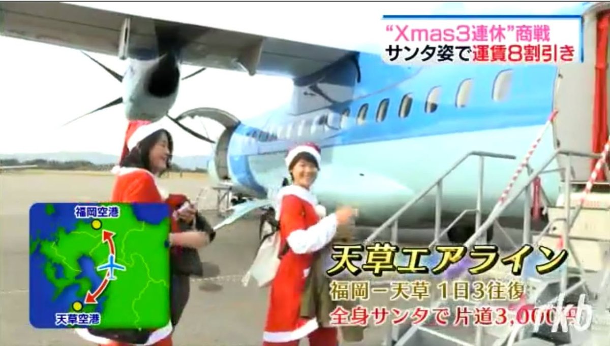 The deal was that, during the month before Christmas, anyone in a Santa suit could fly from Fukuoka to Amakusa for just 3,000 yen. The “3” in 3,000 was decided upon because “Santa” starts with “san.”