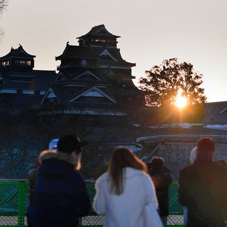 “More than 300 visitors came to stricken Kumamoto Castle here to view the first sunrise of the year. When the sun appeared in the cloudless sky behind the damaged castle and bathed the area in a brilliant light, gleeful shouts erupted from the spectators.”