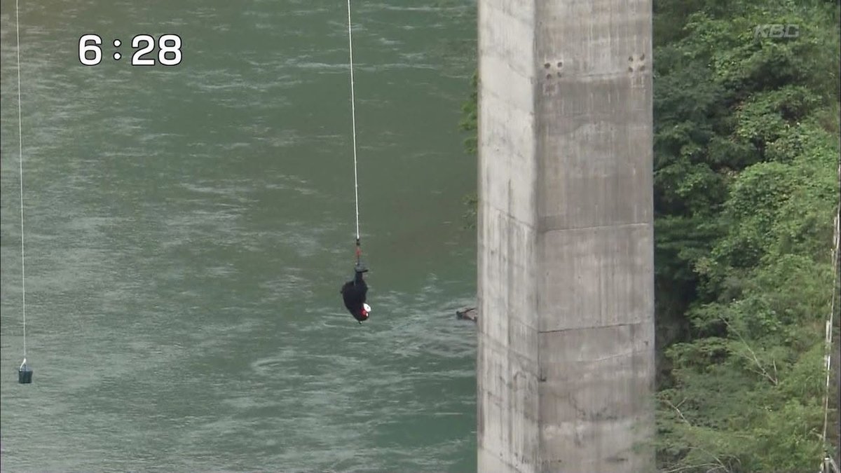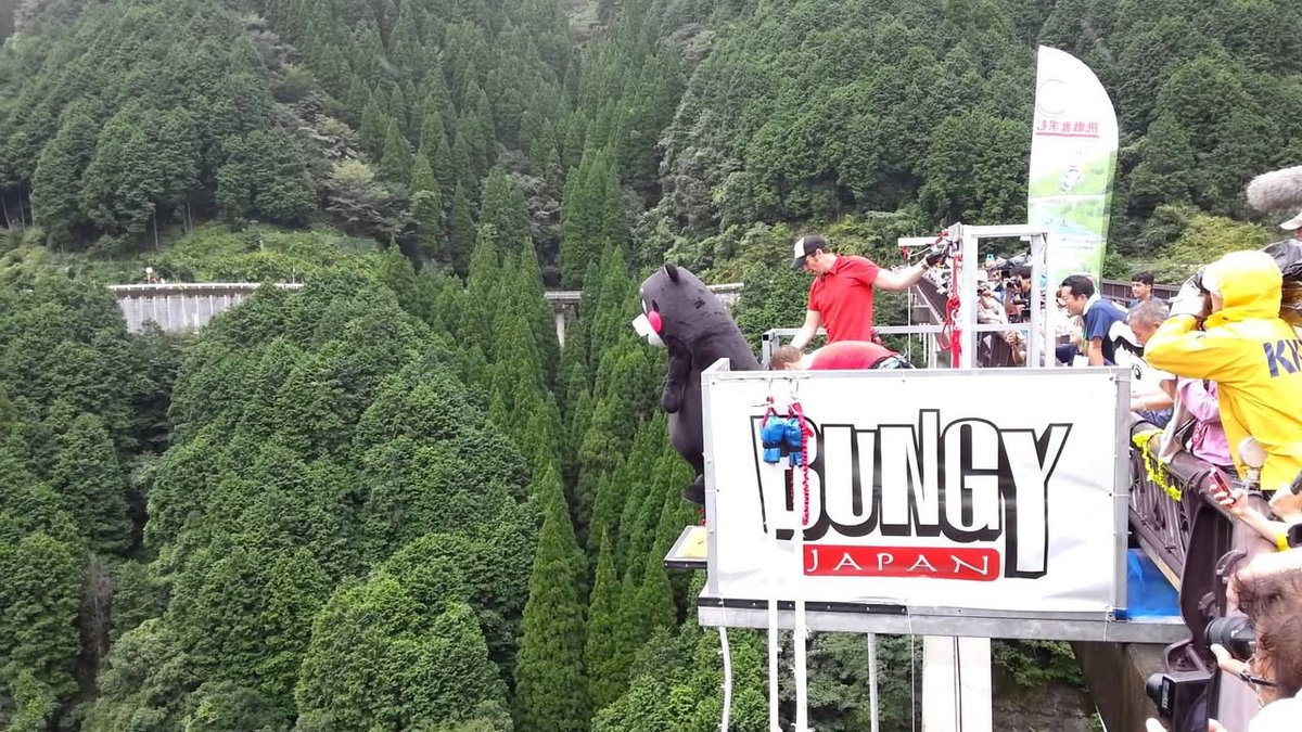 Itsuki Village (五木村), located southeast of Yatsushiro on the Kawabegawa River (川辺川) is beautiful and wild but remote, so the residents have put some effort into activities to attract visitors. One is bungee jumping, as you can see from these photos of Kumamon likely soiling his suit. The bungee jump facility was placed on hiatus in June last year as trained staff were unavailable (and, trust me, staff which is trained is desired here); however, Kumanichi notes that new staff has been secured, and the facility is set to reopen in mid-April, ahead of Golden Week. - William