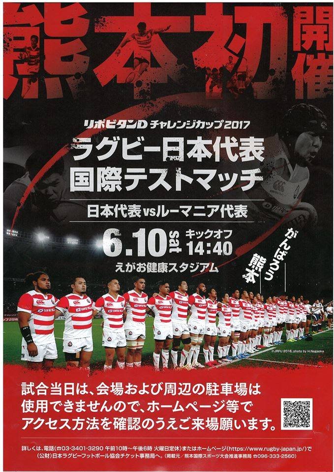 “Japan host Romania on June 10 at Kumamoto’s Umakana-Yokana Stadium, which will be renamed Egao Kenko Stadium in February.”