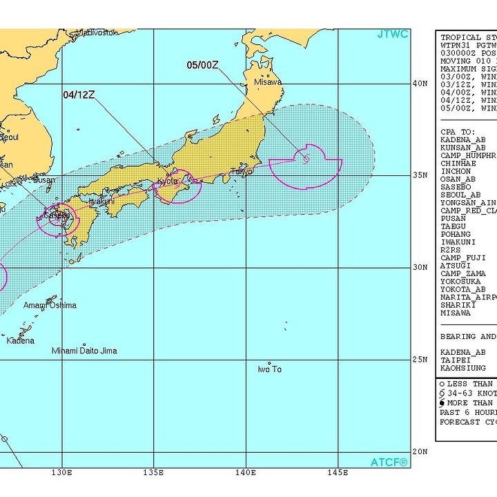 Looks like we’ll have a lil’ typhoon to help us celebrate American Independence Day. It is rather small (JWTC is calling it a tropical storm), but you might expect a bit of wind and rain from midnight tonight through tomorrow evening. - William