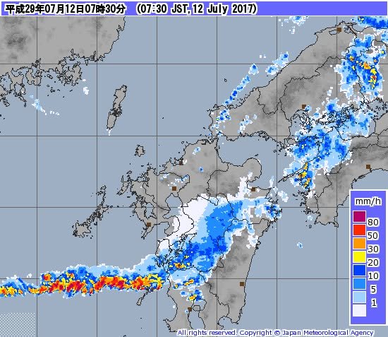From the Kumamoto International Wow, I’m Glad I Don’t Live There Desk: After suffering that 5.2 earthquake yesterday, northern Kagoshima/southern Kumamoto finds itself in the crosshairs of the jet stream. Those down south, please take care. - William
