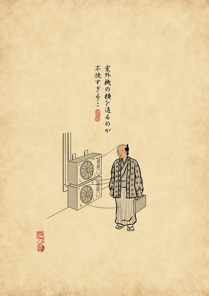 William here. Kirk-san posted yesterday about the heat index, which factors in such parameters as humidity and wind. The approaching typhoon seems to be kicking the breeze up a bit, but above a certain temperature, wind has no effect on human cooling. I just ventured outside, and it felt like this:
