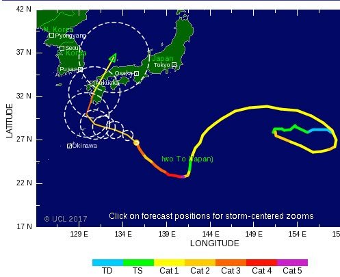According to TropicalStorm.com, NORU (Typhoon No. 5 in Japan) is scheduled to arrive in about 4 days. It’s a strong system and may be a category 2 or even 3 cyclone when it hits Kyushu. That’s a good deal stronger than the typhoon we experienced earlier this year, the one that did a fair amount of damage. On the other hand, though stronger than the previous one, the angle of approach should reduce the impact that we feel here in Kumamoto.